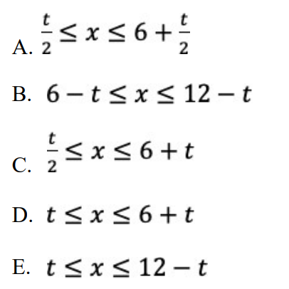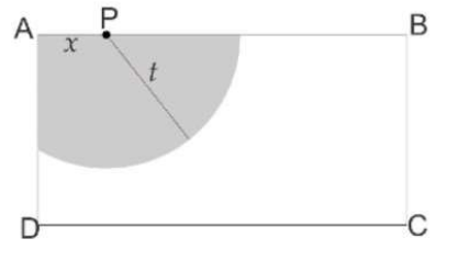 Kambing ditempatkan dalam kandang pada suatu halaman penuh rumput. Kandang berbentuk persegi panjang ABCD dengan panjang AB = 12 meter dan lebar AD = 9 meter. Kambing ditambatkan pada dinding AB dengan tali yang panjangnya t meter. Pangkal tali ditambatkan pada dinding AB di titik P berjarak x meter dari titik sudut A.